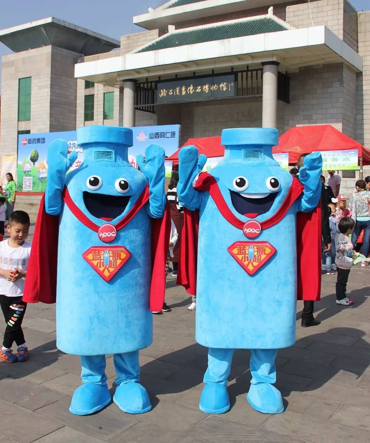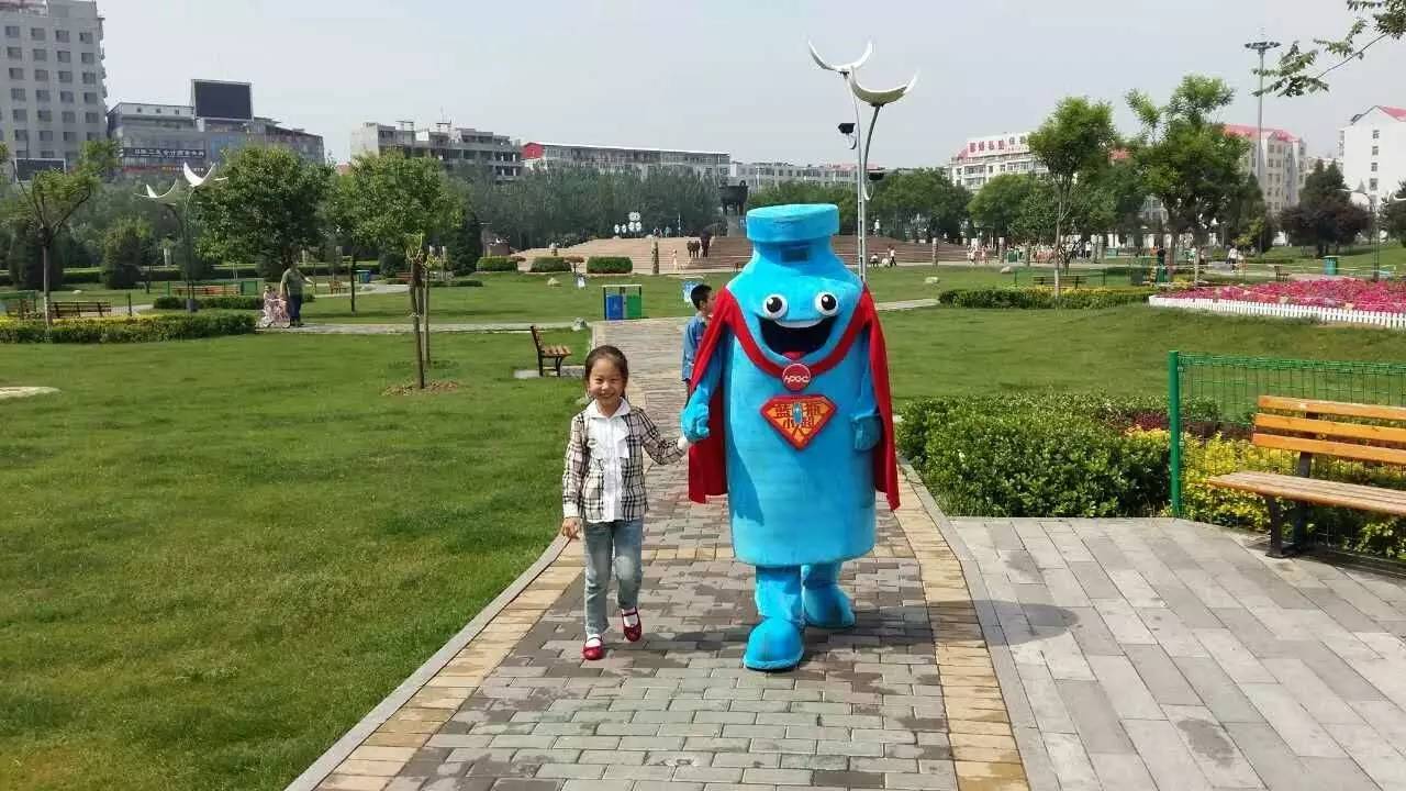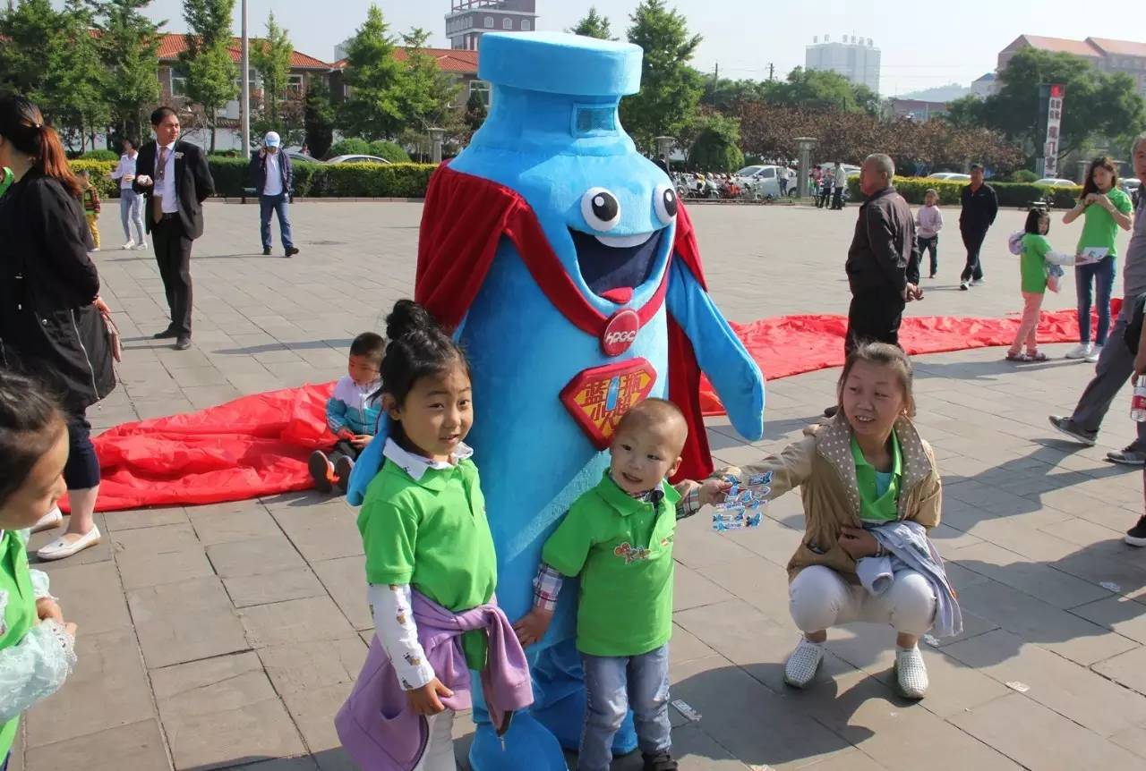 藍(lán)瓶超人與小朋友們一起互動(dòng)